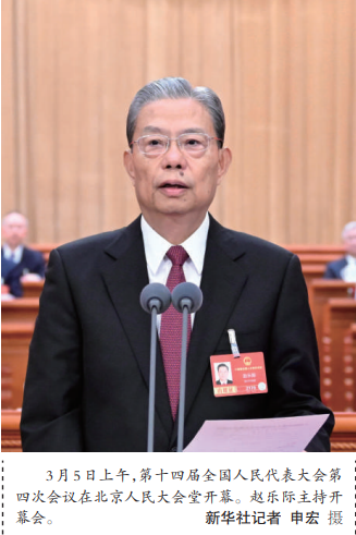 上午9时,赵乐际宣布:中华人民共和国第十四届全国人民代表大会第四次会议开幕。会场全体起立,高唱国歌。